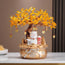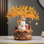 The cute lucky cat is sitting under a golden Feng Shui tree with its paw raised as if it’s waving in good fortune for its owners.